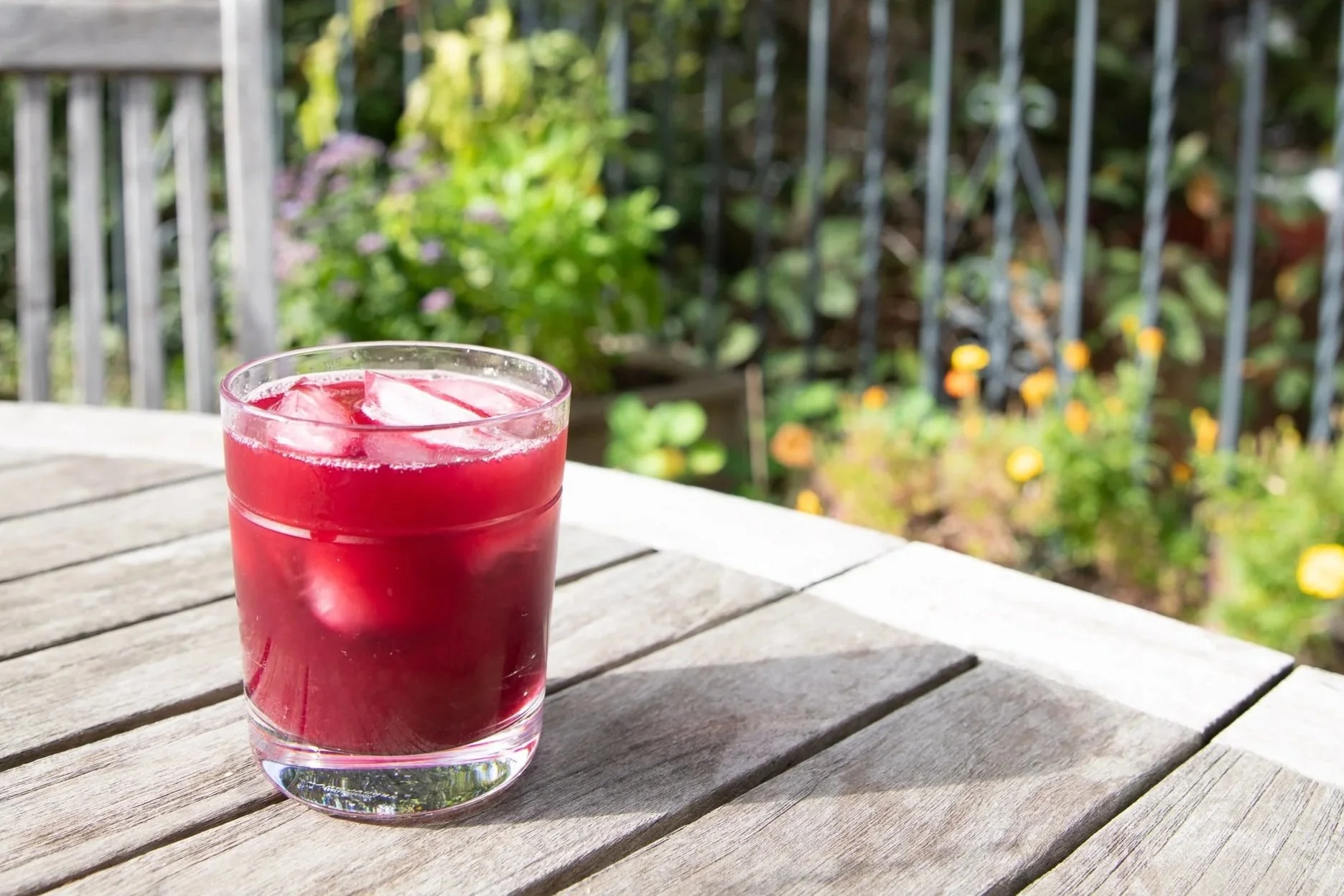 Rinse grapes and pick them from their stems. Put grapes in a small, lidded pot and heat over medium high, cooking until they burst and release their juice (not long! 5 minutes or so). Remove from the heat and mash the fruit around, then stir in sugar, vinegar, and smashed ginger. Put the lid on and let sit, undisturbed, overnight up to 24 hours. The next day, strain the mixture into a bottle or jar, pressing out all the juice through a sieve. If you find the grape mixture has set you can heat it gently to loosen it up again. Refrigerate the shrub and use it mixed with a little seltzer, or in the cocktail of your choice. It will keep for several months.